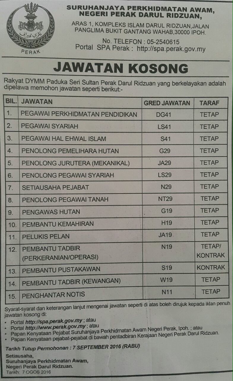 Jawatan kosong kerajaan negeri perak.